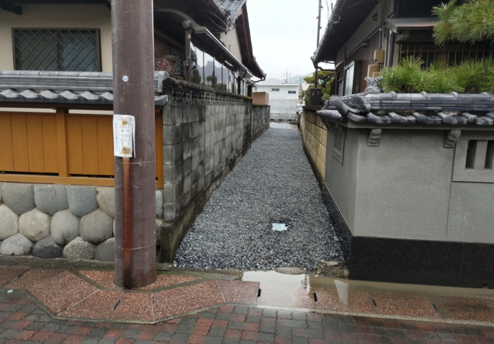 雑草防止の防草シート、砂利敷きのご依頼です。進入路が狭かったですが、無事に完成しました。