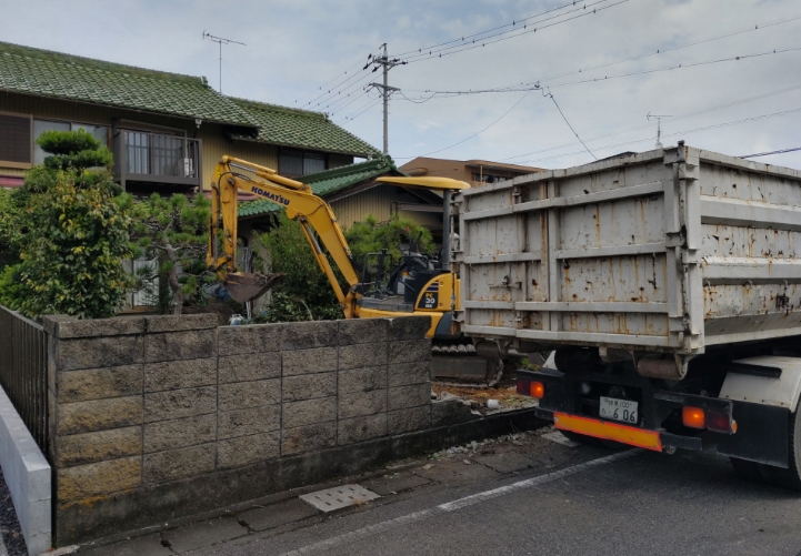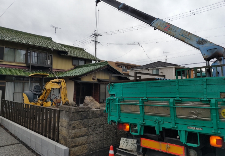 母屋、納屋、庭の解体です。総坪数80坪程の大きなお屋敷です。