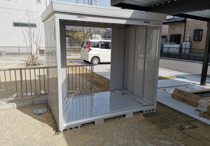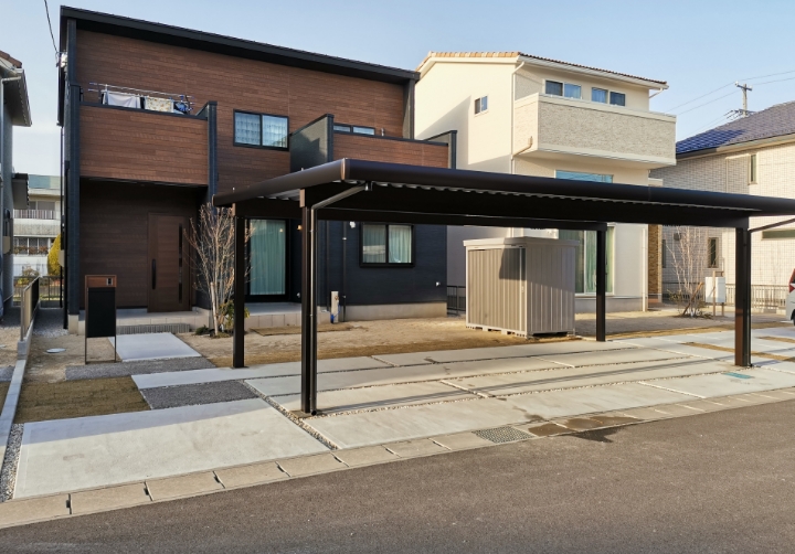 新築住宅にカーポートと物置のご依頼を頂きました。今時の住宅地は道も広くて使い易そうですね。